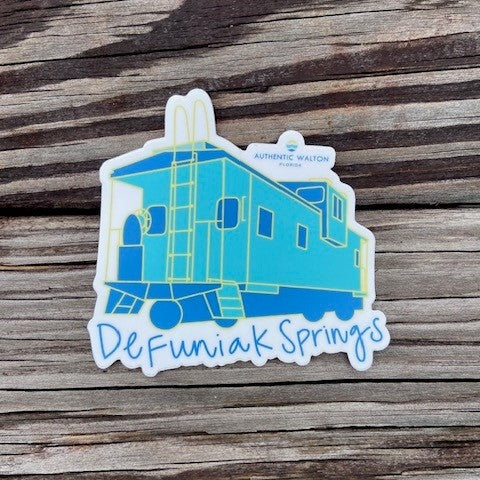Stickers of our towns of Freeport, DeFuniak Springs, and Paxton as well as a variety of images with our South Walton Florida logo and our Authentic Walton Florida logo.