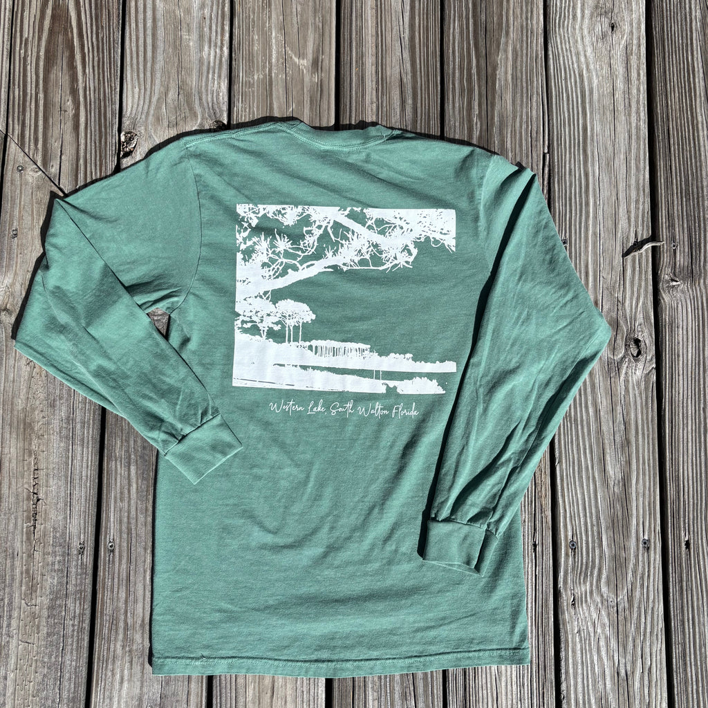 Our newest Comfort Colors long-sleeve tee with Walton County's beautiful Western Lake on the back and our South Walton logo on the front left chest. 100% cotton, pre-shrunk, and garment dyed for a lived-in feel.